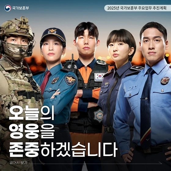 국가유공자와 유가족을 끝까지 책임지며, 자긍심을 가질 수 있도록 제복근무자에 대한 감사 문화 조성을 추진합니다.