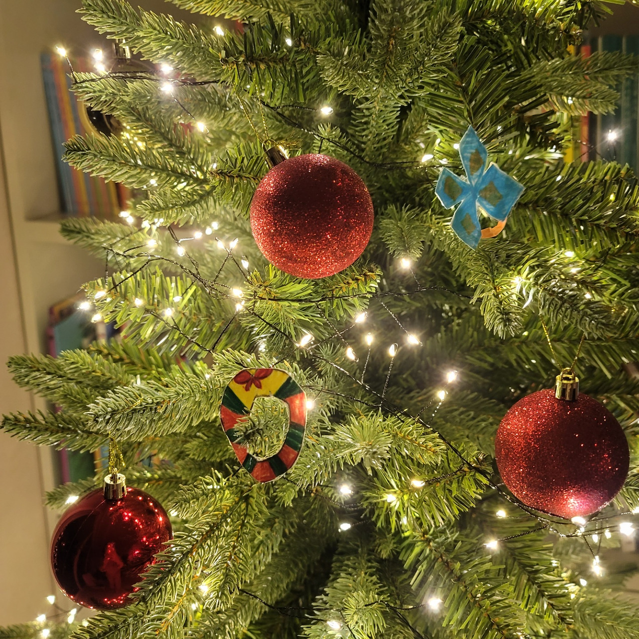 20만원 짜리 트리를 사고(정확히는 24만원) 나도 마음이 편했던 건 아니었다. 천년만년 써야겠다는 다짐으로 사긴 했지만 비싸다는 느낌은 지울 수 없었다. 트리와 전구만 있다고 꾸미는게 아닌데. 목적은 아이들에게 트리를 꾸미는 추억을 주는 것이니 오너먼트도 사야했다. 무거운 마음을 덜고자 아이들과 함께 다이소를 찾았다. 큰 구슬 5개가 단돈 천원이었다. 빨강색, 금색 구슬 10개를 2천원에 사서 아이들과 함께 꾸몄다. 한결 마음이 편해졌다. 남편은 꾸며진 트리를 보더니 예쁘다고 잘 샀다고 말했다. 트리를 말하는건지 다이소 구슬을 말하는건지 모르겠지만 어쨌든 트리는 예뻤다.
