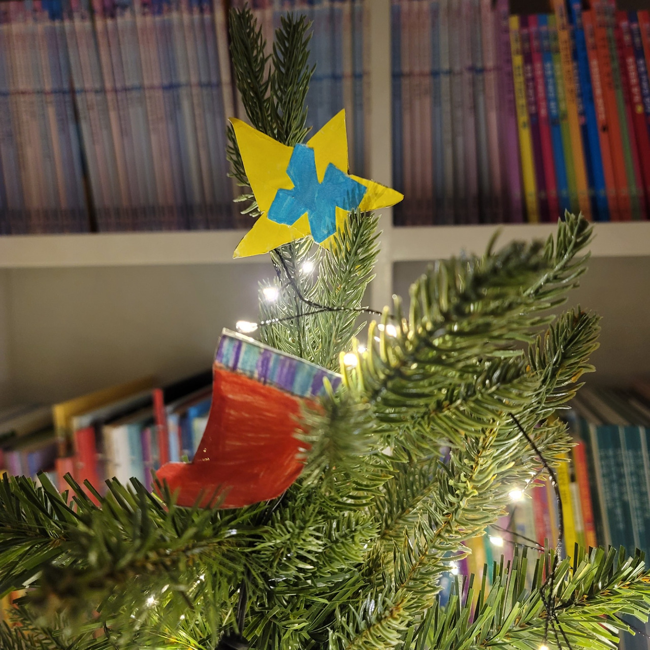 다 꾸민 트리를 보더니 나리가 방으로 들어가 한참있다가 뭔가 들고와서 트리에 놓았다. 트리 꼭대기엔 별이 있어야 하는데 없어서 자기가 만들었단다. 사랑스러운 나리같으니. 칭찬하니까 또 무언가를 자꾸 만들어 트리에 놓는다.