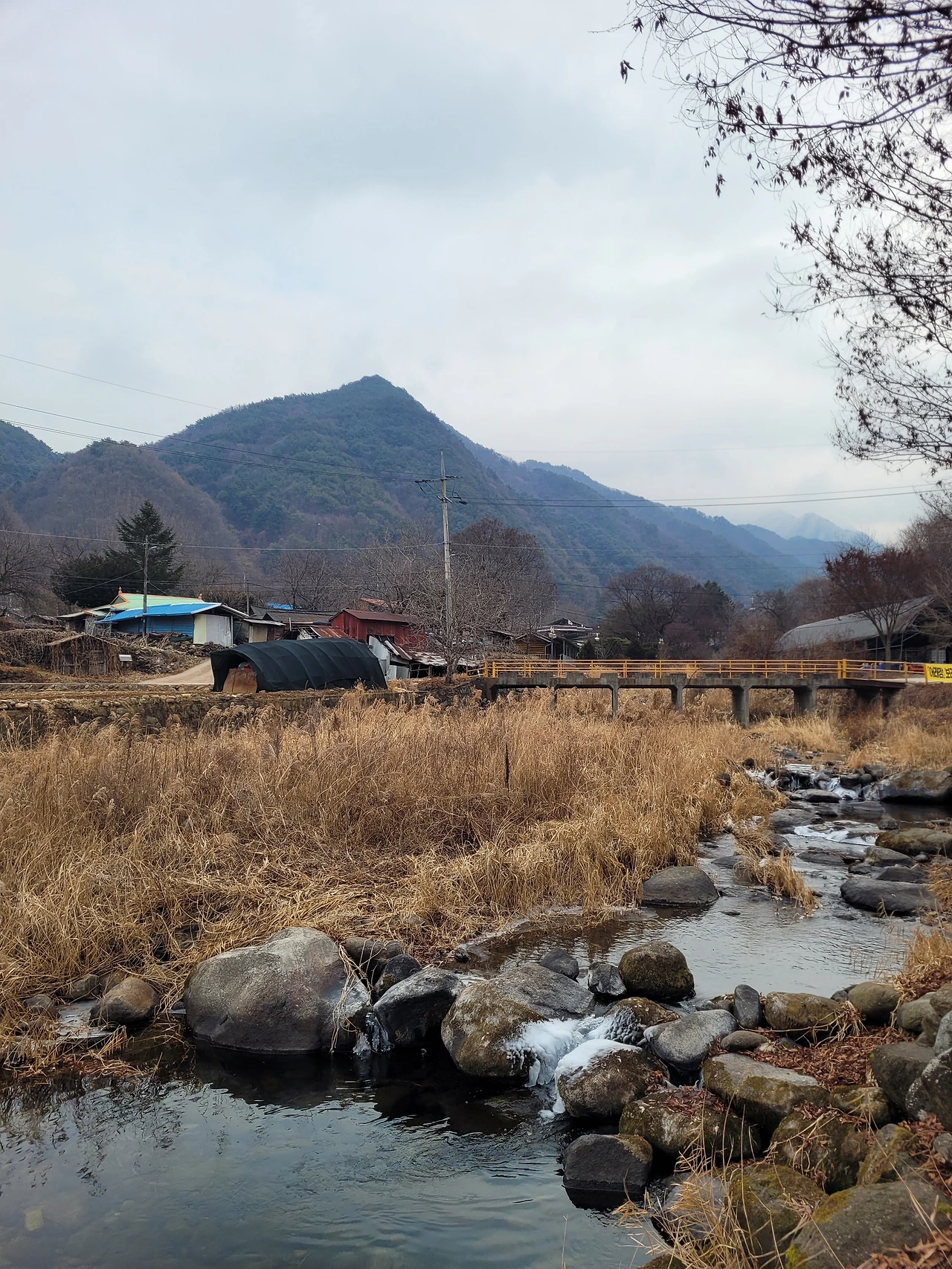 눈 앞에 물이 맑은 소리를 내며 흘렀다.