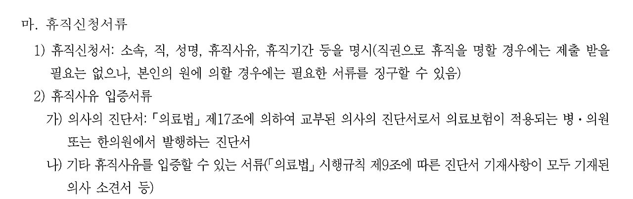 진단서를 첨부하지 못한 경우에는 우선 연가로 처리할 수 있다는 내용을 찾아준 분도 있었다.