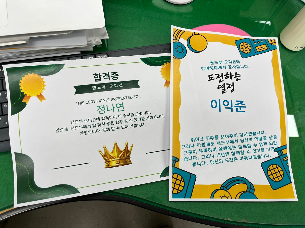 밴드부 오디션에서 2, 3학년 학생들이 지원자들을 상대로 날카로운 질문을 던졌다. 슈퍼밴드 오디션을 방불케 할 정도의 진지함과 예리함이 밴드부실의 공기를 가득 채웠다.
