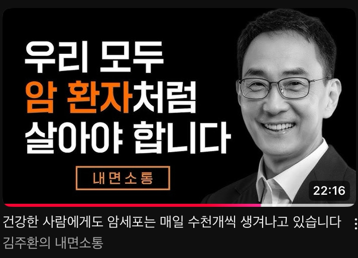 암환자처럼 사세요. 어차피 내 몸에 암세포 생기고 있다니까요. 그러니까 암환자들이 하는 건강수칙, 그거 좀 따라가면서 하세요.