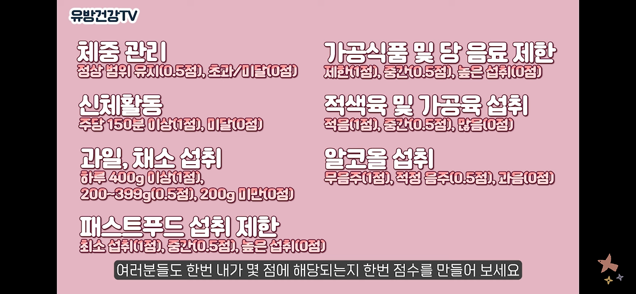 유방건강 TV 유튜브에서 나온 유방암 환자 건강한 생활 체크리스트에서 딱 한 가지 안되고 있는 것이 '체중 관리'이다. 그래서 귀찮지만 앞으로도 도시락은 계속 싸야 할 것 같다.