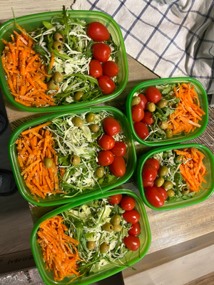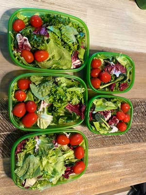도시락을 준비하기 위해 일주일치 샐러드 야채를 주문한다. 일요일에 야채를 씻고 물기를 탈탈 털어서 우주인이 쓴다는 초록색 통에 소분해서 담는다. 이렇게 일주일치 도시락을 준비해 두면 매우 뿌듯하다. 아주 중요한 일을 마친 기분이 든다.