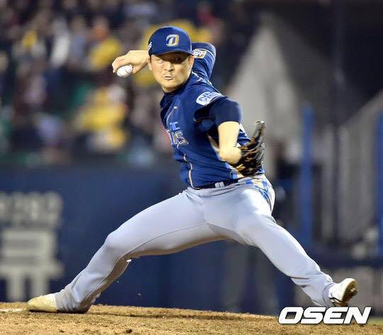 제작년 가을을 지켜 본 NC팬이라면 익숙한 사진일 것입니다. 팬들의 머릿 속에 각인된 원종현의 모습이죠. 2014 준플레이오프 3차전, 그는 남색의 어웨이 유니폼을 입고 nc의 세 번째 투수로 잠실야구장 마운드에 올라섰습니다. 그 날 그가 던진 최고 구속 155km/h 는 아마 십 년이 흘러도 회자될 정도로 강렬하였습니다.