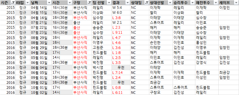 야구팬에게 홈 그라운드에서 경기를 직관하는 경험은 얼마나 뭉클한 일인가. 특히 내 팀이 이긴다면 더더욱. 허나 롯데 팬들은 이런 감동을 누릴 일이 적었다. NC와 경기가 있는 날이면 사직을 가지 않는 편이 마음편할 정도로. 2015년 4월 16일부터 롯데는 NC를 사직 야구장으로 불러놓고 단 한 차례도 승리를 거둔 적이 없다. 해를 넘기고 2016시즌이 끝날 때까지 장장 2년 동안 NC전 at 사직은 모두 패전을 기록하였다.