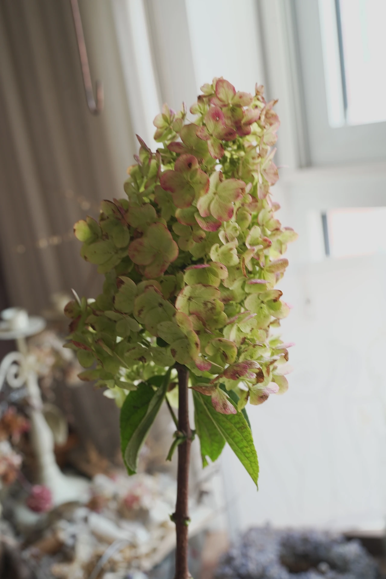 며칠이 지나고 조심스럽게 손에 쥔 목수국은, 예상 외로 너무나 예쁘게 말라 있었다. 드라이로 만들면 색이 갈변될 줄 알았는데, 오히려 색이 더 깊고 짙어졌다. 마치 시간의 흔적이 더해져 더욱 앤틱한 아름다움이 된 것 같았다. 꽃잎의 질감도 생화일 때와 거의 다르지 않고, 그 동그랗고 탐스러운 모양 그대로였다. 마음이 몽글몽글해지면서, 이 목수국을 바라보는 것만으로도 기분이 좋아졌다.