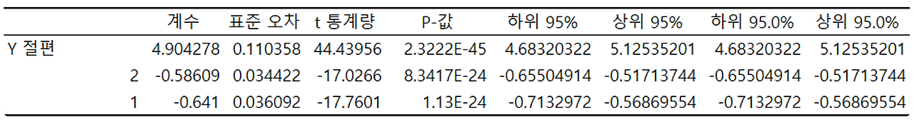<3> 계수표: 회귀식과 각 변수의 통계적 의미