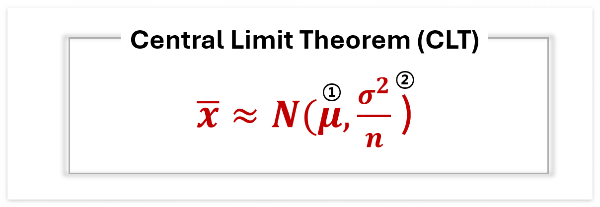 이 수식이 나타내는 주요한 성질은 크게 두 가입니다. 첫째, 표본 평균들의 평균은 결국 모집단의 평균으로 모인다는 것입니다. 즉, 평균의 회귀입니다. 둘째, 표본 크기가 클수록 데이터의 흩어짐이 줄어든다는 것입니다. 표본을 많이 뽑을수록(n이 커질수록), 표본 평균들이 흩어지는 정도(σ²/n)는 아주 작아집니다. 즉, 표본을 많이 조사할수록 우리의 예측은 훨씬 정확해집니다. 이는 표본 크기의 힘을 나타냅니다.