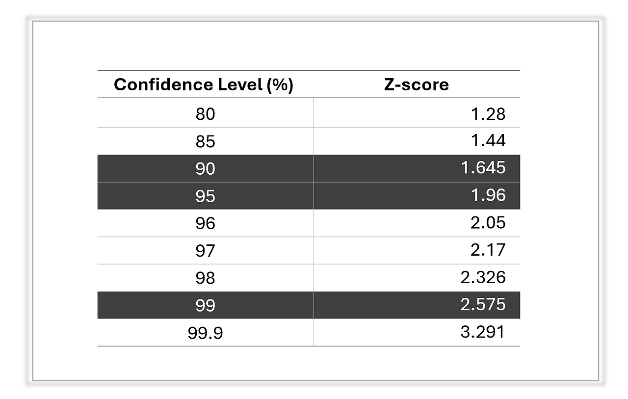 6. 신뢰수준(90%, 95%, 99%)에 따른 차이: z값의 역할