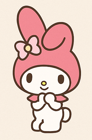 마이멜로디는 쿠로미와 같은 마리랜드에서 태어났고 할머니가 손수 만들어 주신 분홍 후드티를 입고 다니는 소녀 토끼다.