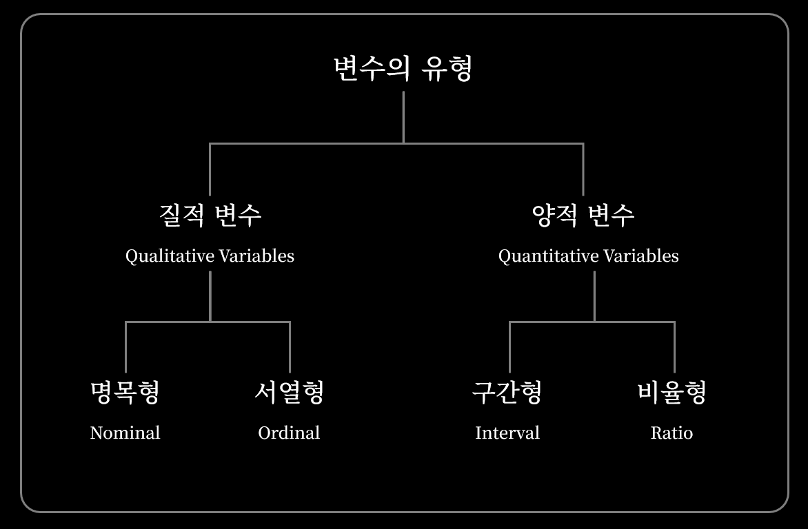 변수에는 여러 유형이 있지만, 크게 질적 변수(Qualitative Variables)와 양적 변수(Quantitative Variables)로 구분할 수 있습니다. 각 변수는 아래와 같이 나눌 수 있습니다.