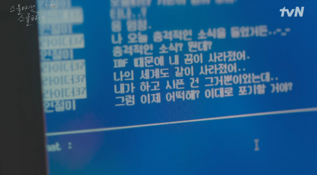 여기서, 그들의 대화가 적힌 인서트 장면, 희도의 표정, 설레는 음악이 이 작품을 기대하게 만든다. 고 스펙, 고학력, 전문직 정해진 형식의 꿈이 아닌, 무모하지만, 굉장하게 꿈을 이루는 과정을 보여줄 것 같다.