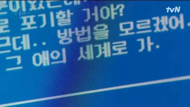 나희도는 자신에게 위로가 되어주는 메신저 친구가 있다. 그 친구가 고민하는 희도에게 해결책으로 준 것이 이 말이다. 희도는 그 순간부터, 굉장히 설레어하며, 그 애 고유림이 있는 세계로 갈 준비를 시작한다.