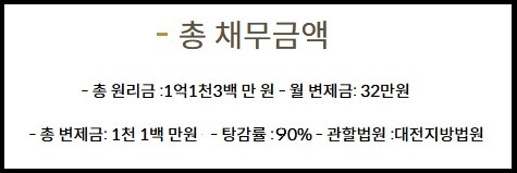 즉, 90%에 달하는 채무를 탕감 받을 수 있었습니다.
