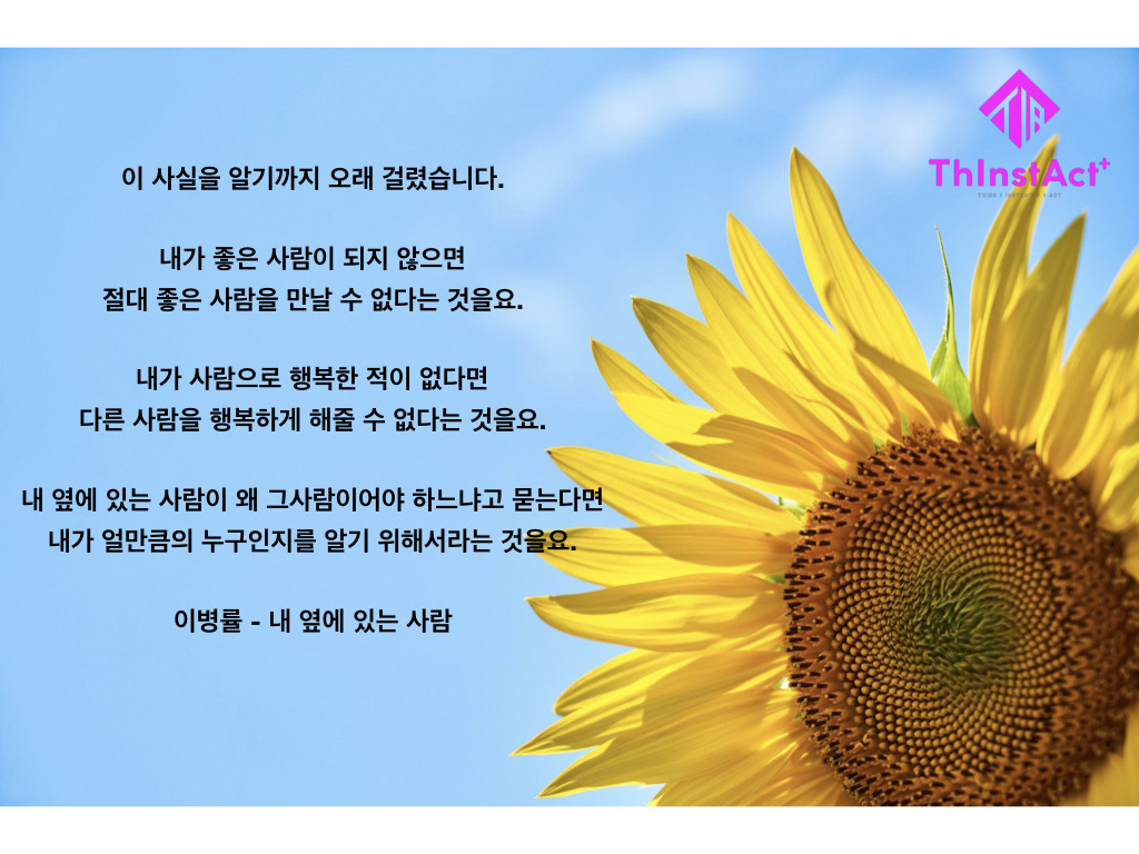 오늘 하루부터 나부터 나를 위해 살아갑니다. 나를 위한 것이 나만을 위한 것이 아닌 당신과 우리들 모두를 위한 시작이니까요.