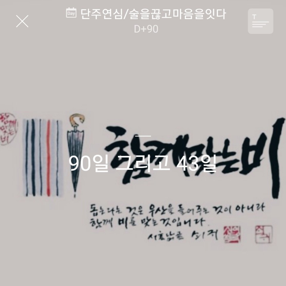 애초부터 술과는 거리가 있었던 것을 깨닫게 된지 30년, 이제 그 시작을 90일 하였습니다.