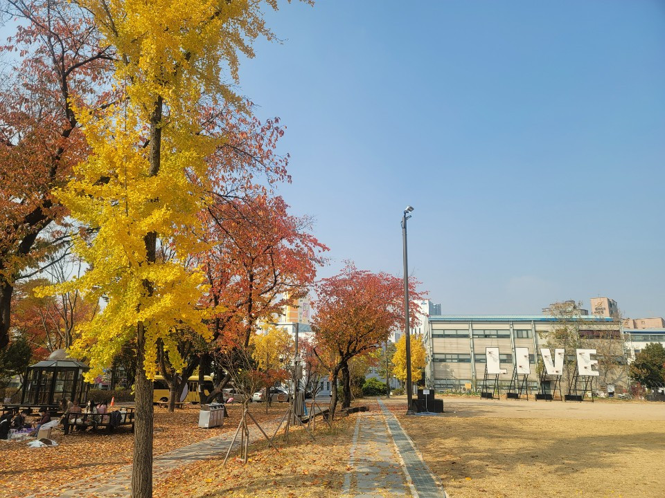 아이들은 떨어진 단풍잎을 하나씩 주워보며 함박웃음이다. 낙엽을 줍고 예쁘다고 말한다. 강아지와 산책을 하고 따뜻한 햇살을 누린다. 바깥 외출에 흥이 난 아이들의 시끌벅적한 소리가 공원을 덮는다.