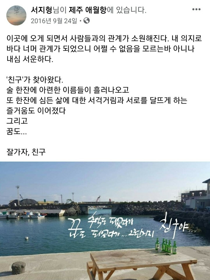 "종연이가 거기 안 왔는데. 사진보고 글 보니 느낌이 팍팍 온다고 하더라고"