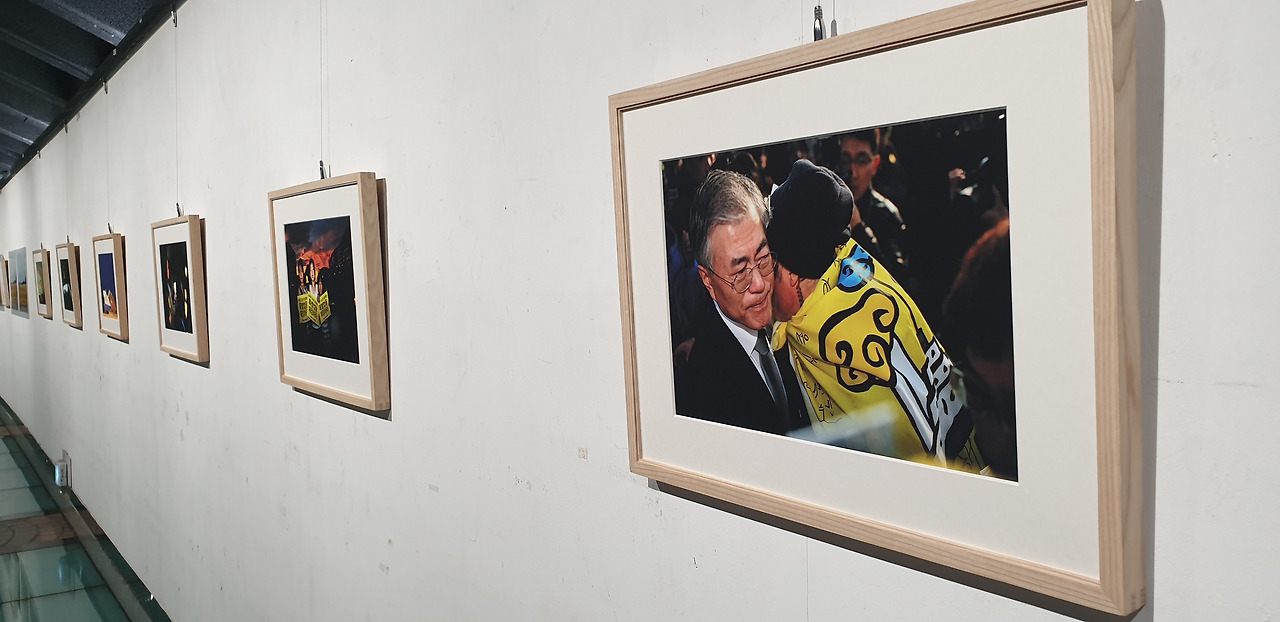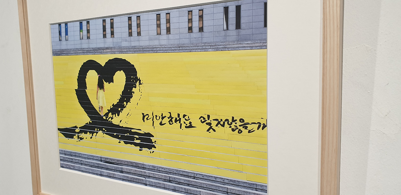 이 사진전의 작가는 전문 사진기자가 아닙니다. 메트로, 지하철 노동자중의 한분인 김정용님입니다. 그날 이후 세월호를 기억하기위하여 한분이 연월차를 반납하고 카메라에 사진으로 아이들을 우리들의 모습을 남기었습니다. 이 분은 오롯히 그 기억을 잊지않기위해서 세월호의 기억과 아픔이 있는 곳 어느든 쫒아가서 셔터를 눌렀습니다.