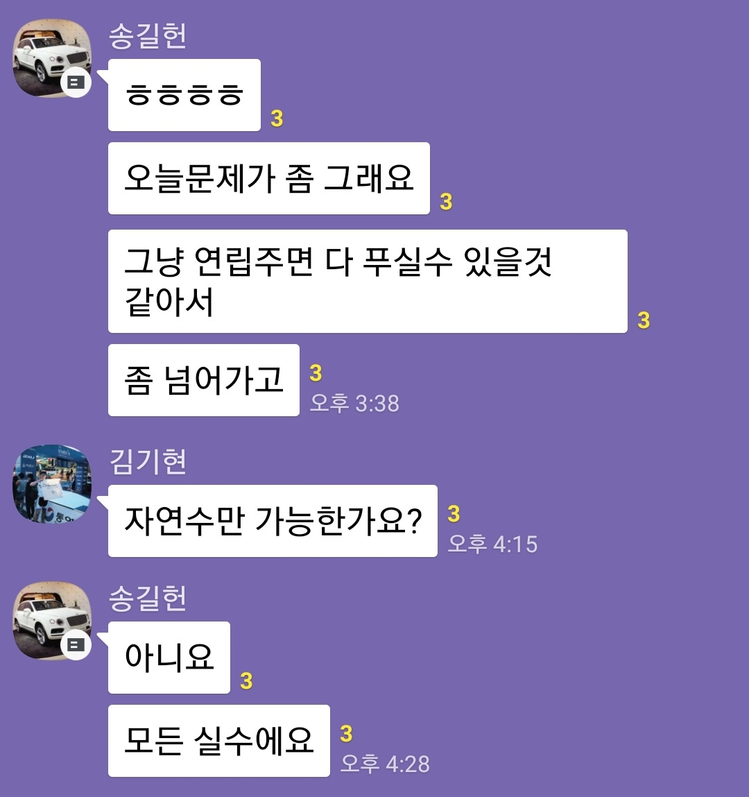 문제도 보지않고 당당하게 쌤에게 카톡을 보냅니다
