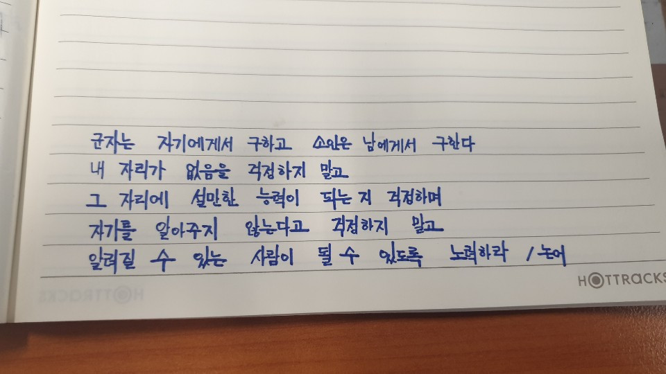 나는 재작년부터 올초까지 시필사를 한 적이 있다. 한글자 한글자 글씨를 써내려가면서 시의 의미를 되새기고 시인과 이야기하며 시 자체와 대화하려고 했었다. 그러나 언제부터인가 SNS에 그날의 필사 사진을 찍어서 올리기 시작했고 어느날부터인가 내 글씨체가 아닌 남의 글씨체로 필사를 하고 있었다. 물론 두 글씨 모두 나의 것이지만 필사를 하는 자세는 내가 아니었던 것이다. 나를 위한 필사가 아닌 보여주기 위한 필사, SNS에 올리기 위한 필사, 자랑하기 위한 필사, 칭찬받기 위한 필사, 시인과 대화가 단절된 필사에만 사로잡혀 있었다.