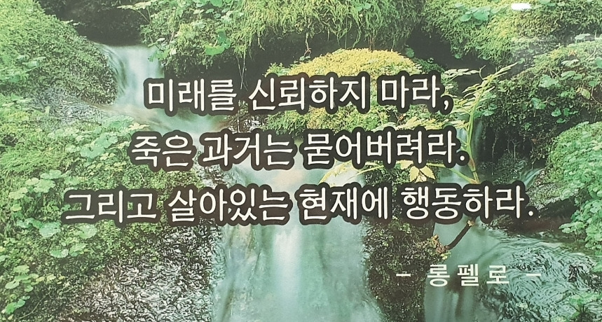 살아숨쉬는 지금을 놓지고 죽은 어제를 이미 지나가버린 과거에서 벗어나라고 외친다. 오지않은 불투명한 미래에 되지않을 기대를 걸지말라고도 당부한다. 어제와 내일은 오늘이 이어간다. 바로 살아있는 현재가 내일을 밝힐 것이다.