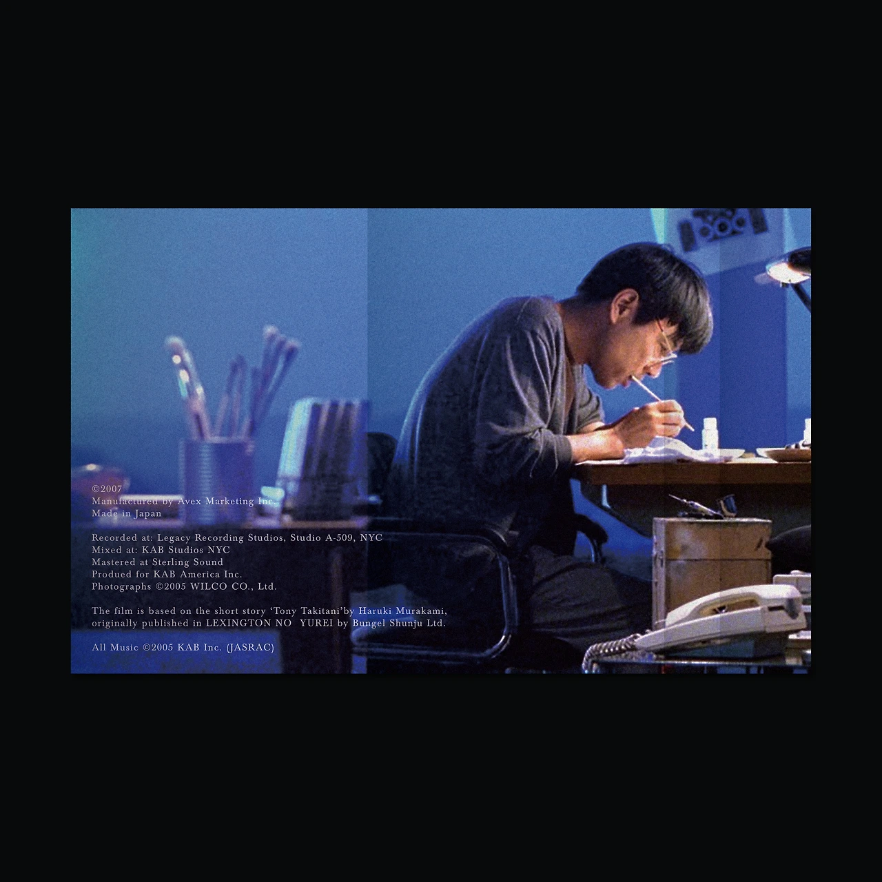 뒷면에는 고독하게 작업을 하고 있는 토니 타키타니의 옆모습과 사운드트랙 크레딧을 추가했습니다.