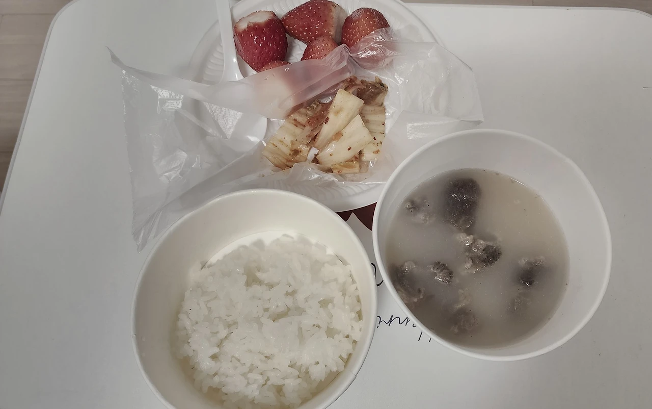 엄마도 질세라 끓여온 곰국과 공수한 딸기 한 상