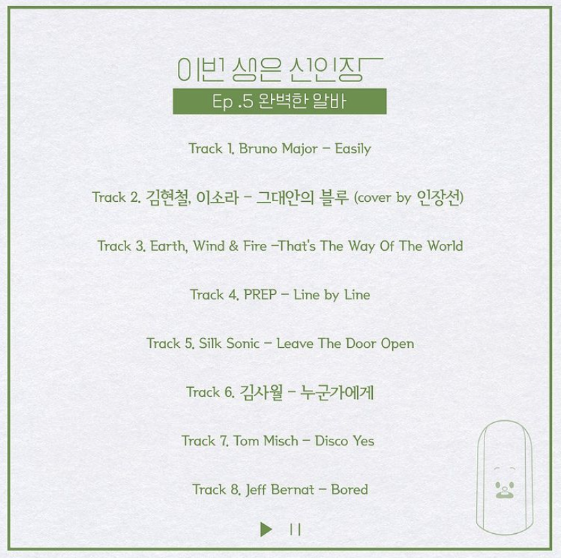 실제로 선곡이 이 콘텐츠의 중요한 요소라고 제작자들 역시 생각하는지, 인장선 인스타그램에 각 화 BGM들을 알려준다. 유명한 노래부터 또 그렇지 않은 노래까지 다양하다.