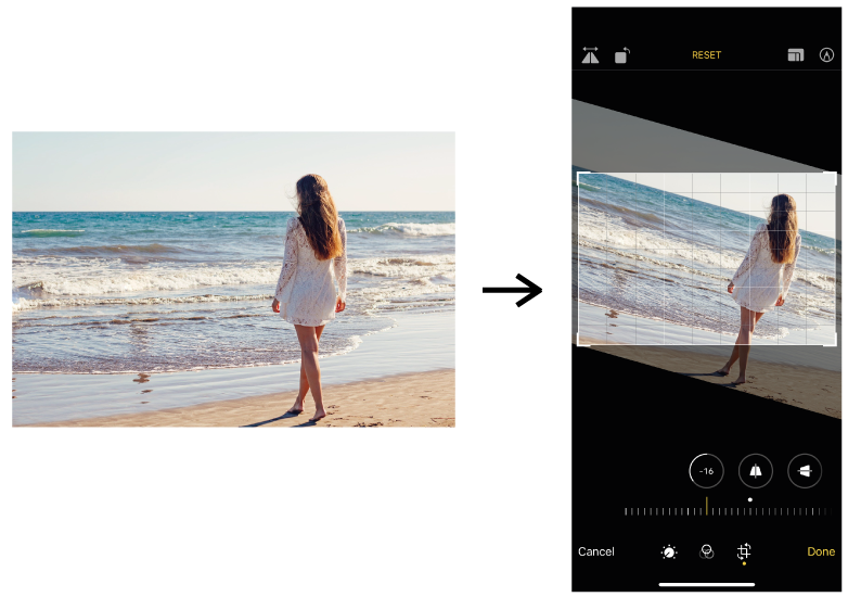 사진 편집 기능으로 사진을 5°, 7°, 16° 이런 식으로 돌릴 수 있지만 그렇게 하다가는 발이 잘리거나 원하는 사진의 크기가 나오지 않을 수 있다. 그렇게 되면 그 사진 또한 사용하기 꺼려질 수 있다.
