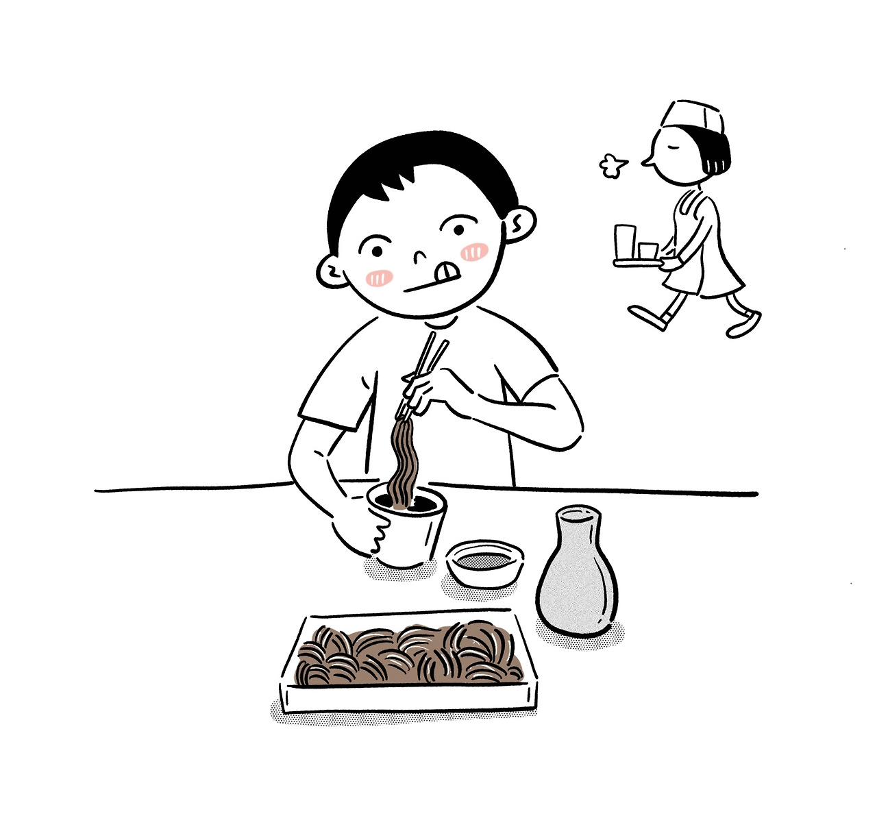 일본에선 소바면을 다 먹은 후 면을 삶았던 물, 즉 면수유를 따로 내준다. 이것을 쯔유에 부어 먹으라는 의미인데, 마치 따뜻한 된장국을 마시는 느낌이 난다. 이것만 봐도 일본은 우리처럼 자루 소바에 차갑게 먹는 의미를 강조하는 게 아니라는 것을 알 수 있다. 한마디로 한국으로 건너온 자루 소바는 한국식으로, 한국인 취향에 맞게 바뀌었다고 볼 수 있겠다. 예전의 난 일본 현지에서 먹는 소바가 훨씬 더 맛있다고 느꼈으나, 시간이 지나고 나니 우리 식대로 시원하게 먹는 것을 더 좋아하게 되었다. 다만 여전히 쯔유는 일본의 여러 업체들이 만드는 쯔유가 좀 더 맛이 풍부하기 때문에, 일본에 여행 갈 때마다 마트에 들러 종류 별로 사오는 편이다. 희석식 보다는 바로 사용할 수 있는 쯔유로 판매되는 것이 더 맛있는데, 아무래도 해당 업체 역시 '자신 있으니까' 내놓는 것 아니겠는가.