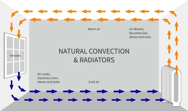 에어컨이 천장에 있는 것과 온돌이 바닥에 깔려 있는 이유가 이것이다.