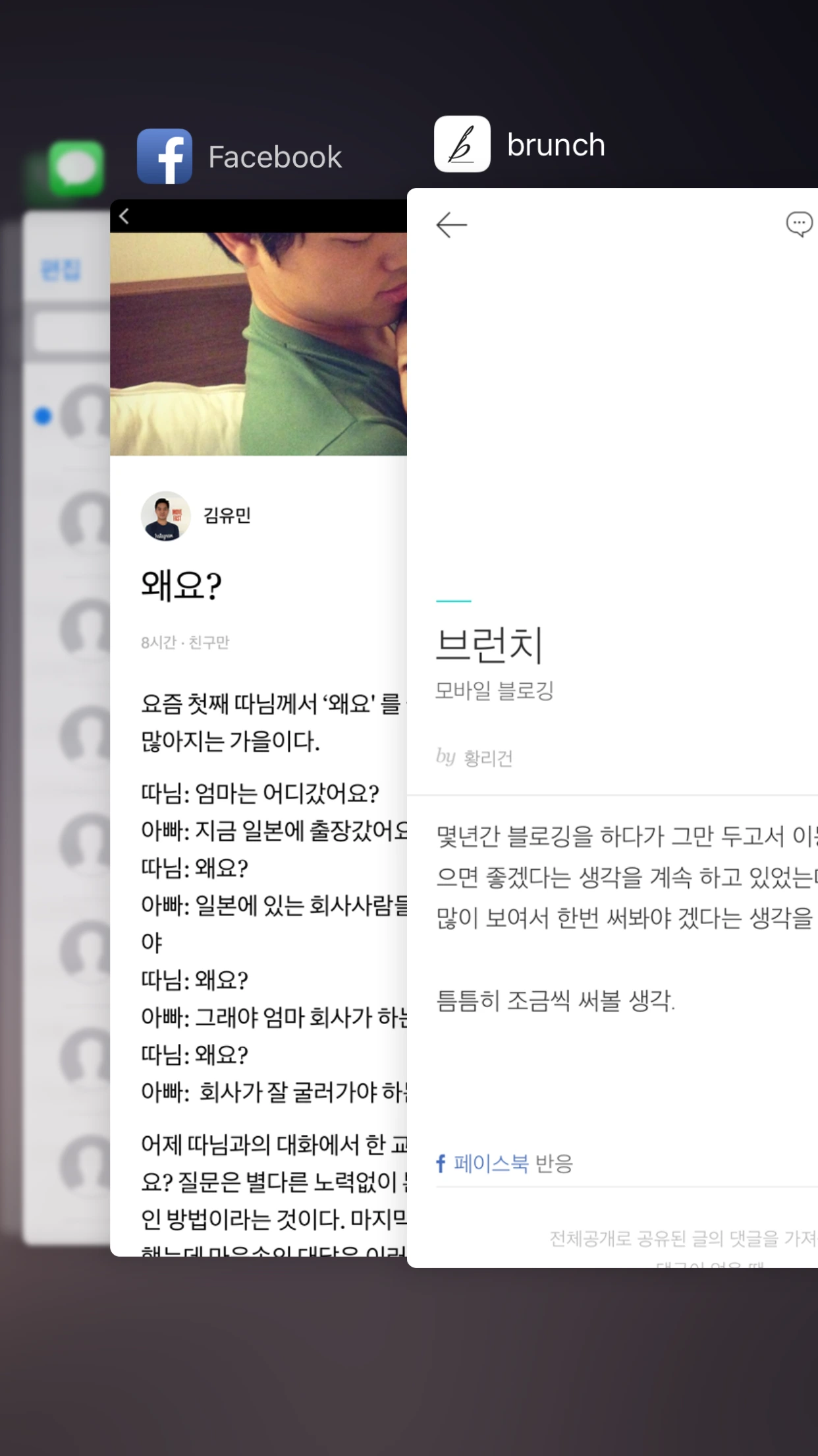 이 건 페이스북의 노트와 브런치의 비교인데, 페북의 글이 확 눈에 들어온다. 브런치도 예쁘지만 페북의 경우 글의 주목도가 훨씬 높은 것 같다. 색상 차가 크니까 제목과 본문 이외에는 자연스럽게 묻히고 꾸밈 요소가 없어서 더 깔끔해 보인다.