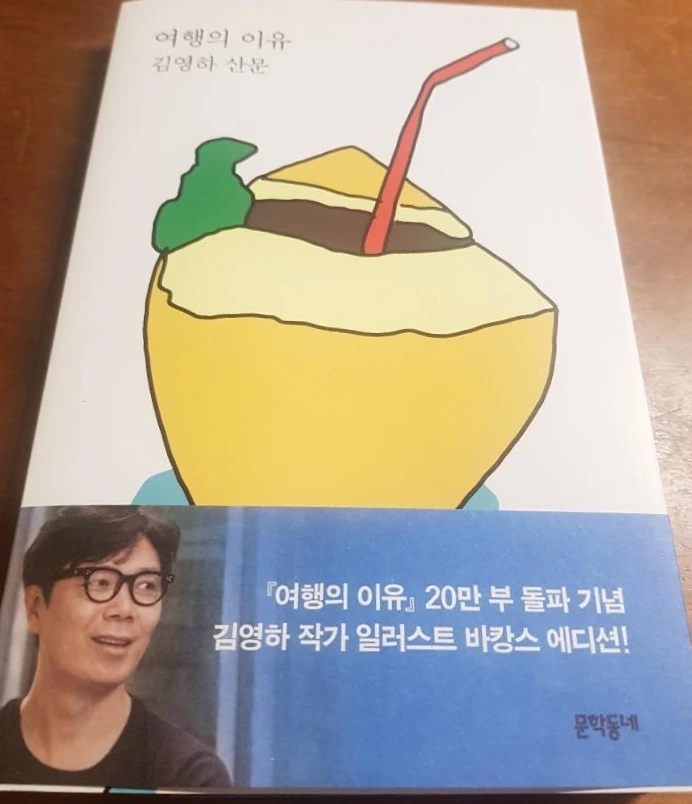 산책을 멋지게 마무리하고자, 책 한 권을 집어 들었다. 출간 3개월 만에 20만 부가 팔렸다는 김영하 작가님의 ‘여행의 이유’, 그것도 코코넛 일러스트가 제법 귀여운 바캉스 에디션. 두 시간 반 동안 책 한 권을 뚝딱 읽어버렸다.