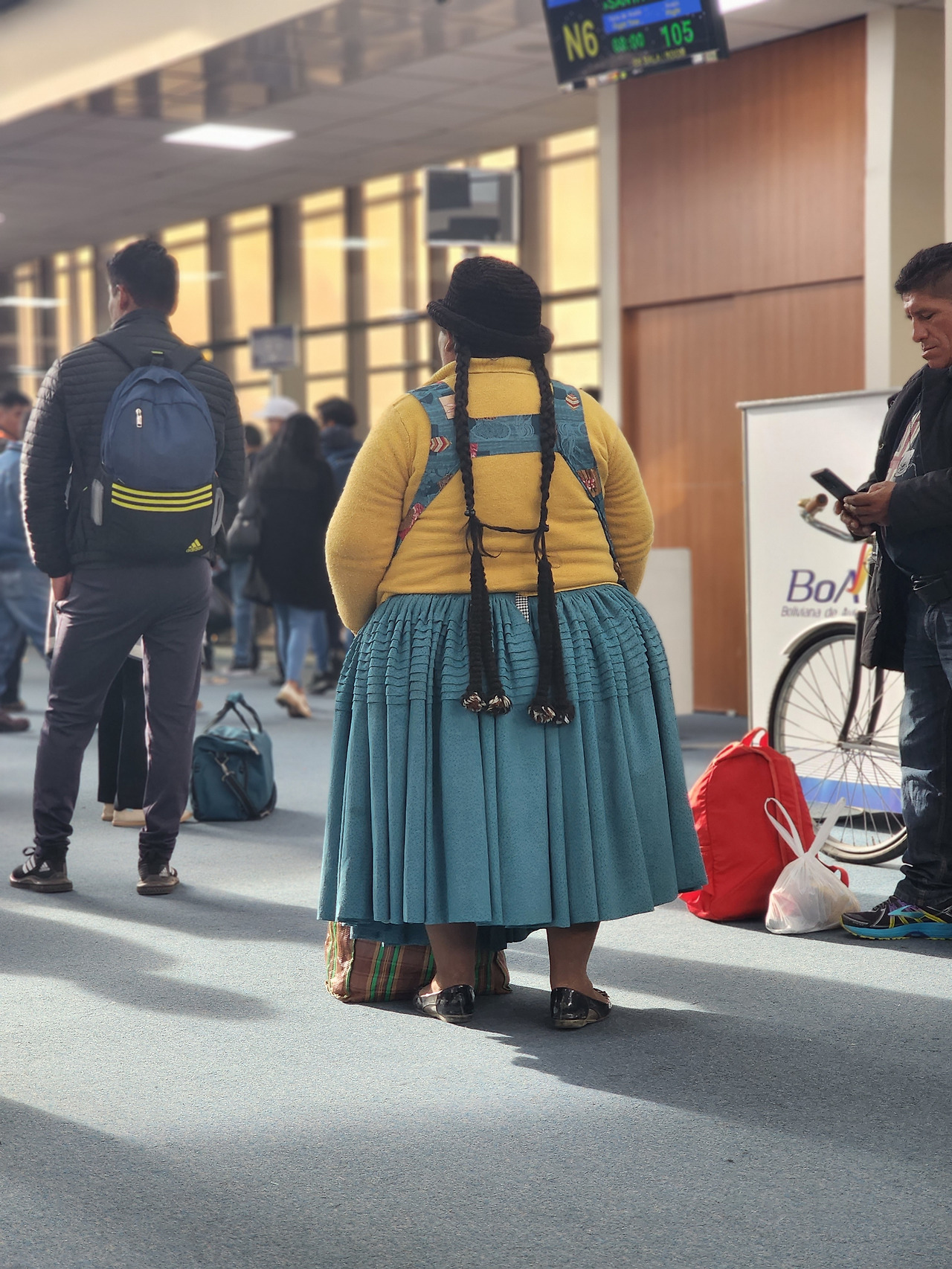 가는 곳마다 무지개색 줄무늬의 망태기를 짊어지고 챙이 높은 모자를 쓴 채 뒤뚱거리며 걷는 여성들의 옷 속이 매우 궁금했다. 페루와 볼리비아는 인디오적인 색채가 강하여 길거리에서 이들의 전통복 스타일을 많이 볼 수 있다. 알고 보니 이러한 복장의 여성들을 촐리타(cholita) 혹은 촐라(cholla)라고 불렀다. 이 명칭은 식민시대에 스페인 사람들이 메스티소와 혼혈인들을 촐로(cholo)라 낮춰 부른 데서 유래했다고 한다.