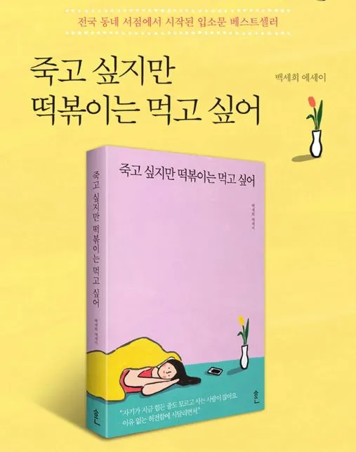 나는 전공 과제를 위해 기획서를 작성할 때, 트렌드를 분석하기 위해 대형서점에 자주 들렀다. 한 번은 위에서 소개한 '죽고 싶지만 떡볶이는 먹고 싶어' 책 표지처럼 눈에 띄는 색에 귀여운 일러스트가 그려져 있는 표지의 책들이 즐비한 것을 보며 '책의 유행'에 적잖이 실망한 경험이 있다.