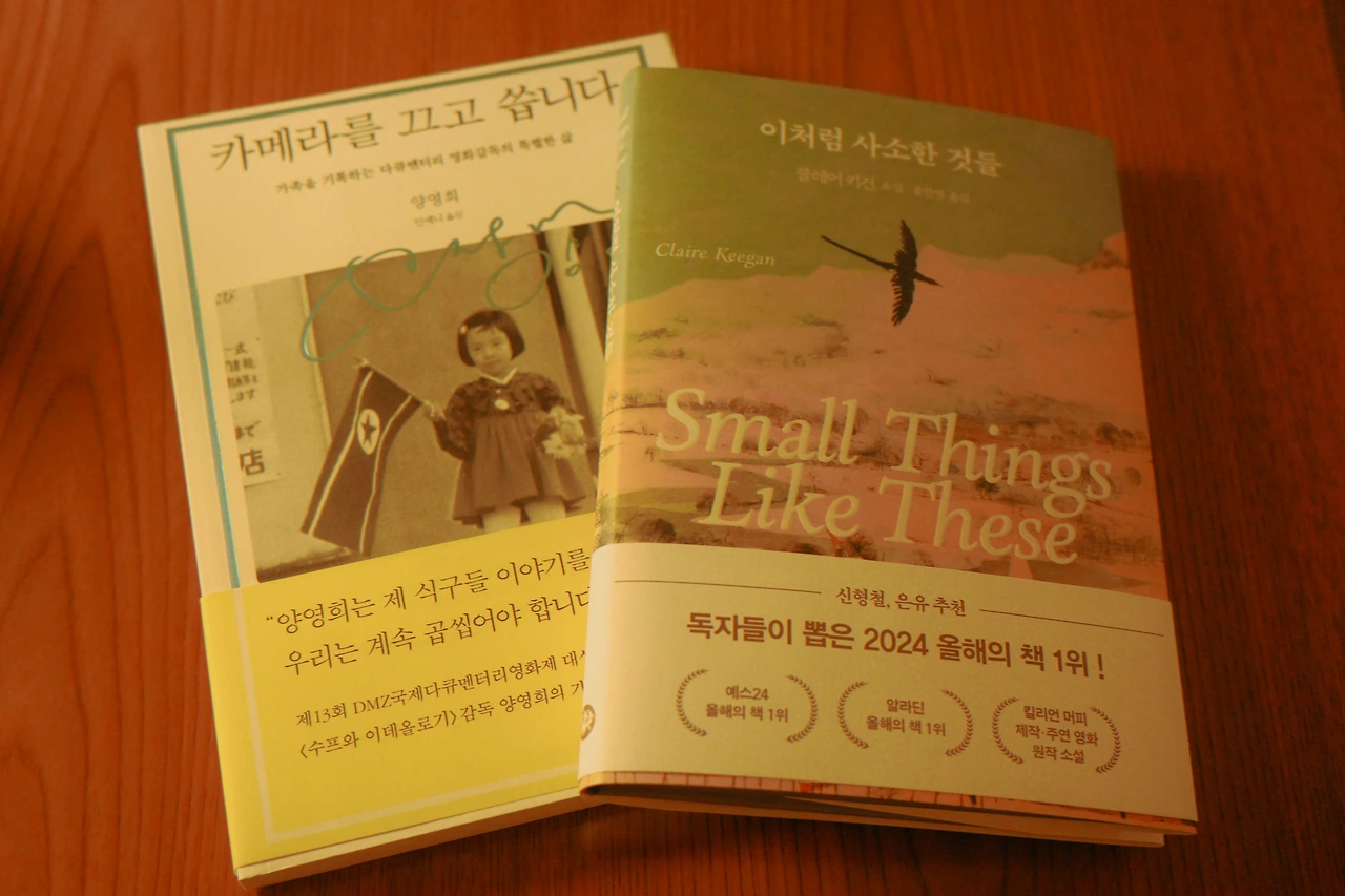 고타츠 좌식 테이블에 자리를 잡았다. 담요를 덮고, 조금 전에 구매한 양영희 작가의 카메라를 끄고 씁니다를 펼쳤다.