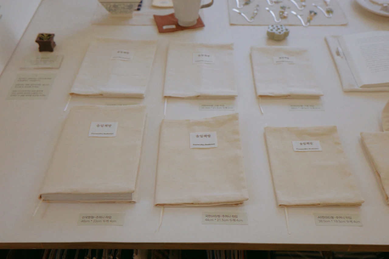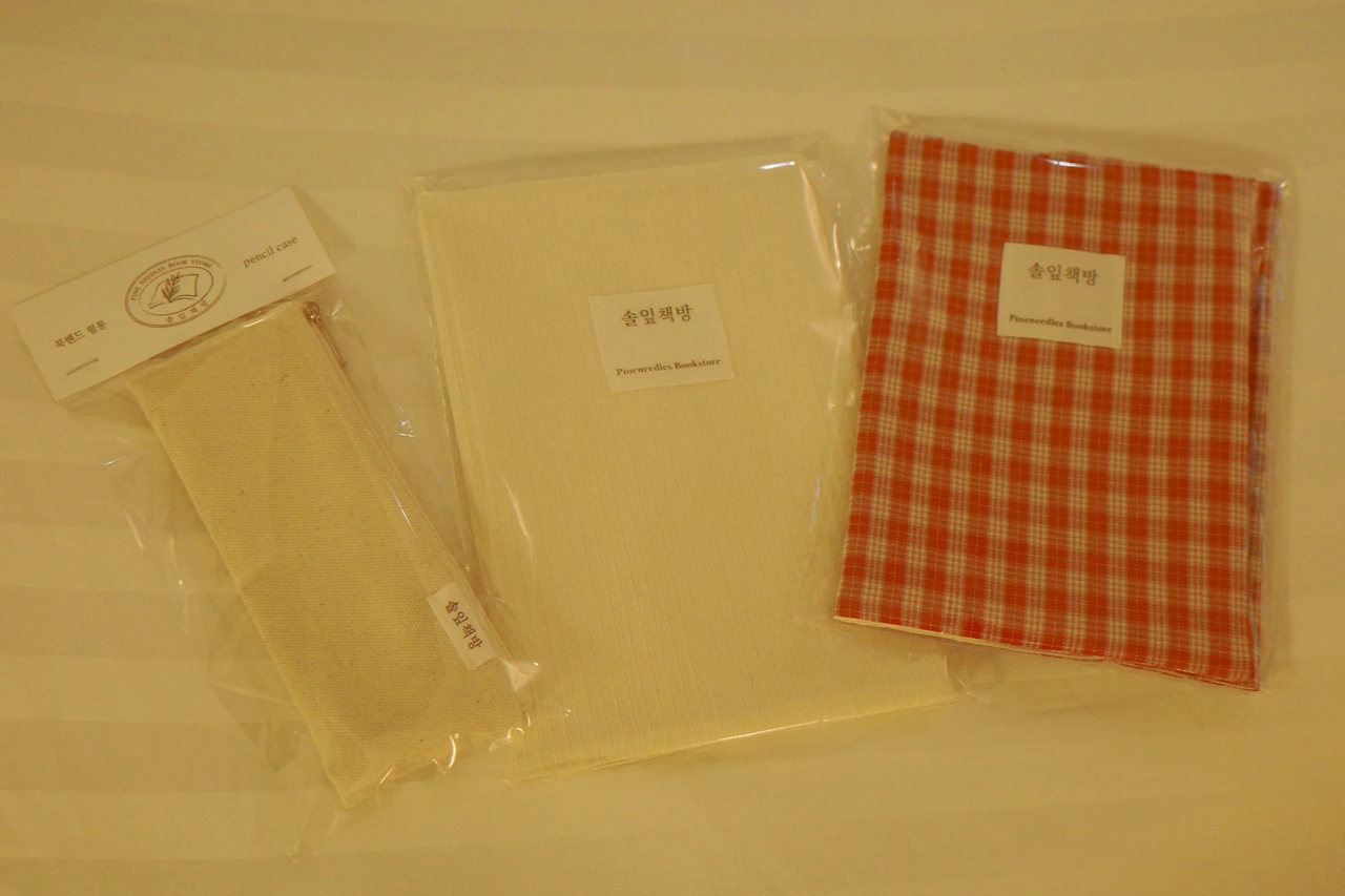 주문제작 가능하다고 했지만 번거로워질 것 같아 그건 또 포기. 두 번째로 마음에 들었던 북커버를 두 가지 스타일로 골랐다. 그리고 책 뒤에 끼워서 사용하는 작은 필통도 골랐다. 책과 관련된 물건을 사는 건 책을 사는 마음만큼이나 기분이 좋아지는 일이다.