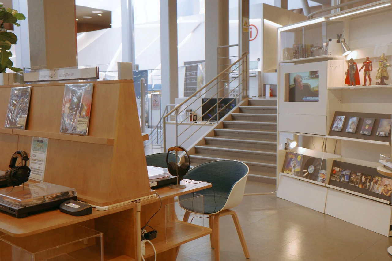 진열된 책 사이를 가볍게 걸어본다. 아니, 완전한 영화 전문 아카이브로 들어와 버렸잖아? 책장 왼편으로는 멀티미디어실과 LP 음반을 들어볼 수 있는 공간이 별도로 마련되어 있었다. 이곳에서는 시네마테크부산 개원 이래로 역대 기획전 자료나 부산국제영화제 출품작 자료들을 볼 수 있다고 한다. 한국영상자료원 VOD 전용 열람석에서는 이곳에서 제공하는 영화들도 감상할 수 있다. 이날도 한쪽에 마련되어 있는 영상 부스에서 영화를 관람 중인 사람이 있었다. 우리 집 앞에도 이런 도서관 하나만...