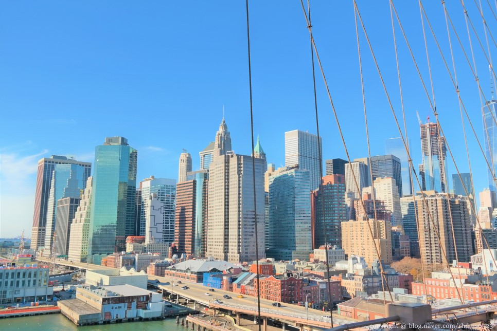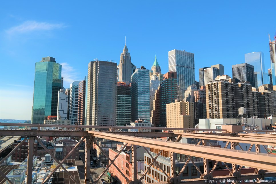 낮에 보니 밤에는 보지 못 했던 윤곽선이 선명하게 드러났다. 건물의 색상도 그렇고 조화도 그렇고. 순간 이렇게 멋진 곳이었나 싶었다. 내가 기억하고 있는 뉴욕 모든 영화의 오프닝 장면에 동시 접속한 듯한 전율이 흘렀다.