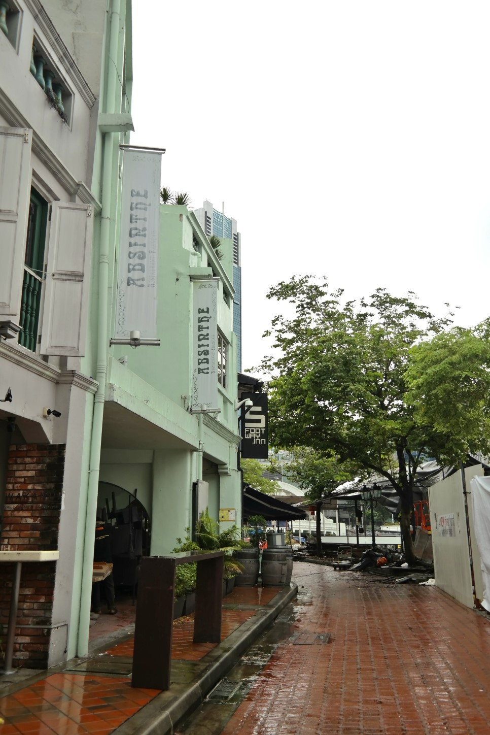 왼쪽: 서큘러 로드 진입로. 노란색 간판 쪽으로 쭉 가다 보면 왼쪽으로 좁은 골목길이 나오는데 여기로 들어가서 강이 나타날 때까지 걸어 다시 좌회전하여 쭉 가면 5footway inn project Boat Quay가 보인다.