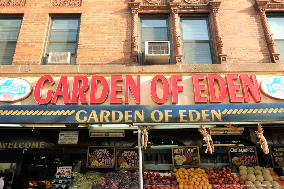 어퍼 맨해튼으로 올라와서 그런지 햇살은 금귤의 색으로 더욱 진해졌다. 이 정도면 석양이라고 해도 믿을 수 있겠다. 걸어 올라가는 중에 에덴의 정원(Garden of Eden)이라는 마켓에 눈길이 갔다. 꽃과 과일이 한 곳에 나란히 진열되어 있었는데 그 색감에 반했다고 해야 하나. 여행하면서 이런 풍경을 마주하게 되면 그늘진 공간에 햇살이 들어차는 것처럼 기분이 한없이 밝아지는 걸 느낀다. 꽃과 과일의 경계가 무색하다. 세상엔 이토록 아름다운 것이 많은데. 신의 창조물이 지닌 아름다움을 누리는 것도 사는 동안 마땅히 해야 하는 임무가 아닐까, 라는 거창한 생각까지 들기도 하면서 여행의 행복에 따르던 그간의 죄책감이 걷히고 잠시 동안 벅차오르는 기쁨을 만끽하게 된다.