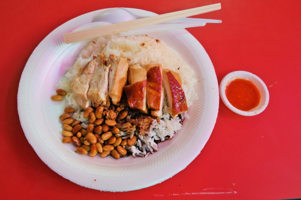 홍콩 소야 소스 치킨 라이스 앤 누들은 차이나타운 콤플렉스 푸드센터 2층에 있다.
