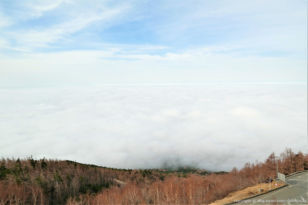 후지산 드라이브 트레일에서 내려다본 빼곡한 구름. 이 구름들 때문에 지상 가까이에서는 후지산을 볼 수 없었습니다.