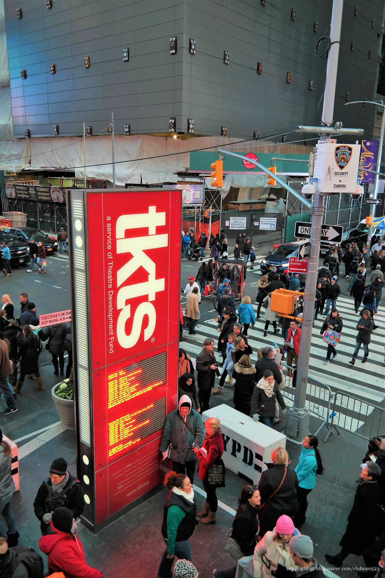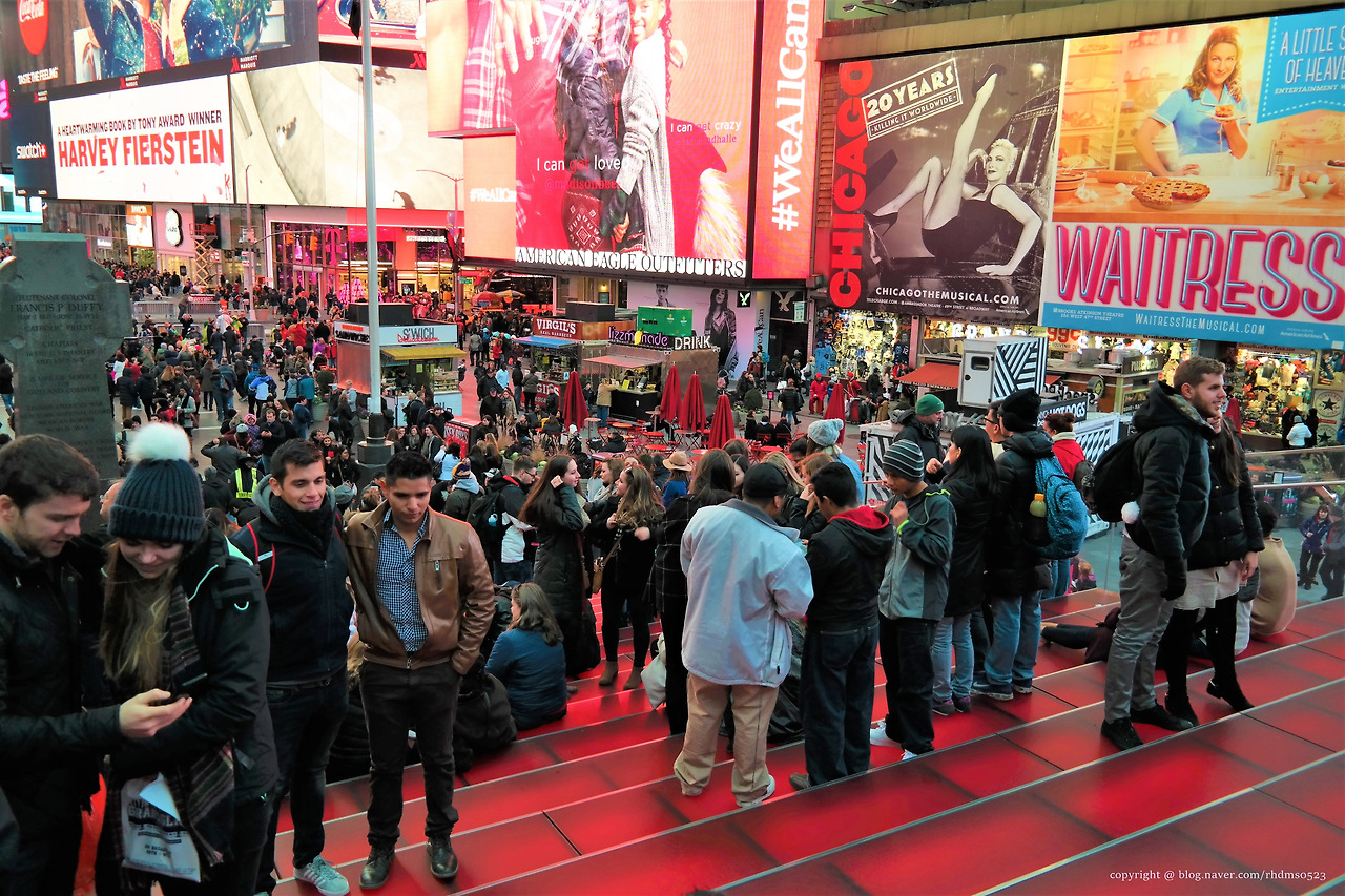 도착한 날 저녁, 가장 먼저 타임스퀘어를 찾고 크게 감동했던 나는 언제 이곳에 다시 올지 모른다는 아쉬움으로 매일 밤 이곳에서 일정을 마무리하겠다는 무모한 다짐을 했었다. 그리고 폭설로 인해 빨간 계단인 TKTS(Tickets의 약자)가 차단된 날을 제외하고는 매일 타임스퀘어를 찾아와 하루 일정을 매듭지었었다. 유치한 생각인데 적어도 난 타임스퀘어 11번 가본 사람이야. 라고 자랑하고 싶었던 모양이다. 그때는 생각이 어려서 질보다 양이 중요한 여행이었다.