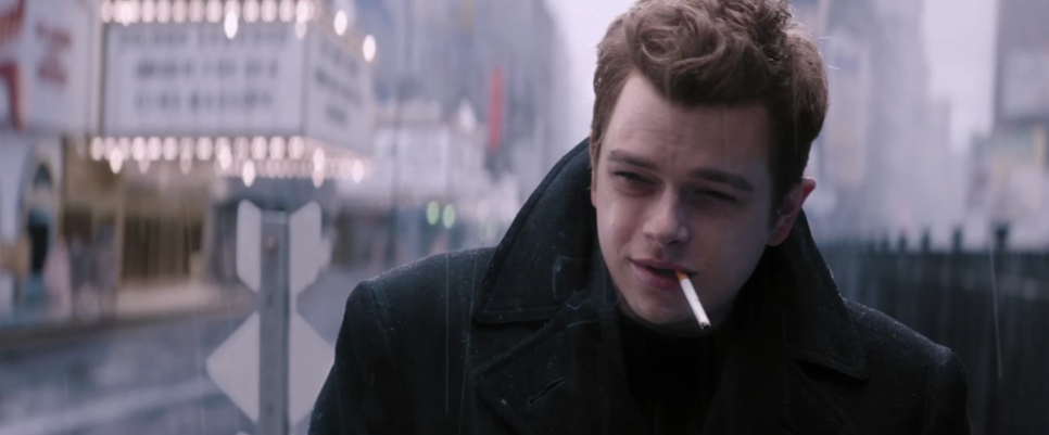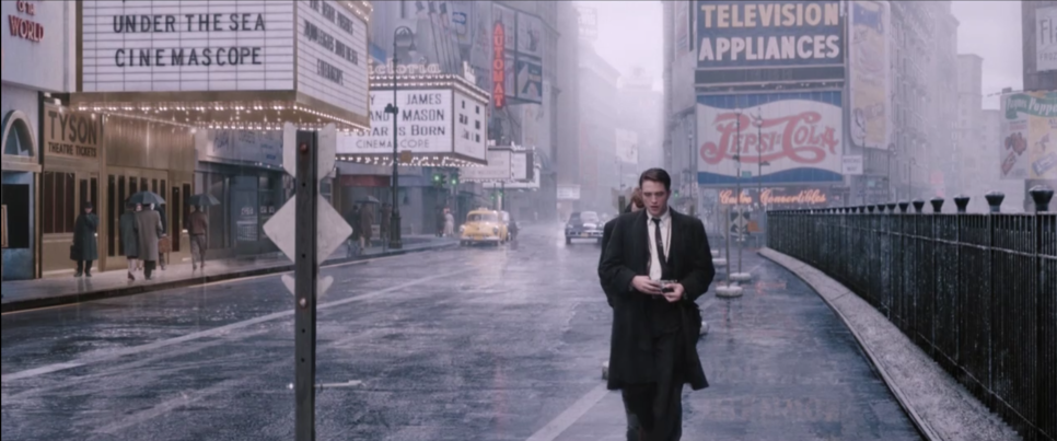 비 내리는 날. 입에 담배를 문 채 무심히 타임스퀘어를 걷고 있는 제임스 딘의 모습.