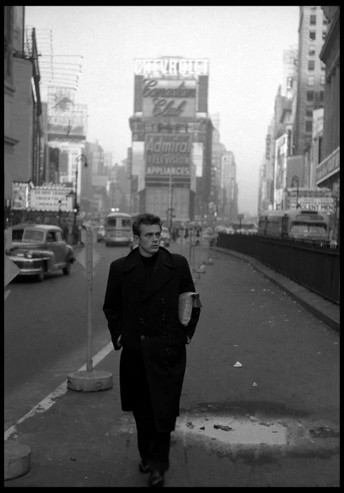 https://medium.com/everythings-interesting/james-dean-a-life-in-pictures-5c0e0877472#.1daoweidn 1955년, 타임스퀘어의 제임스 딘. 데니스 스톡의 작품이다.