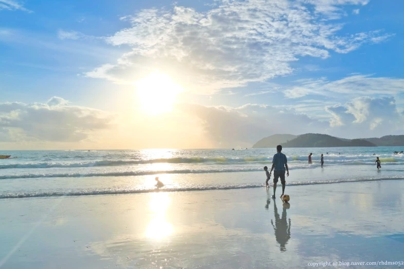 나는 지금 말레이시아 랑카위의 체낭비치라는 곳에서 태양을 마주하고 있는 중이라고.